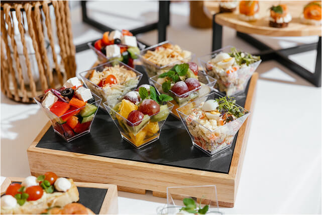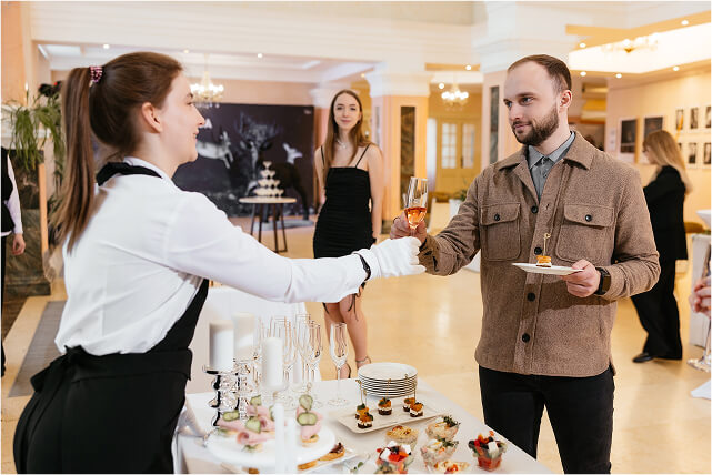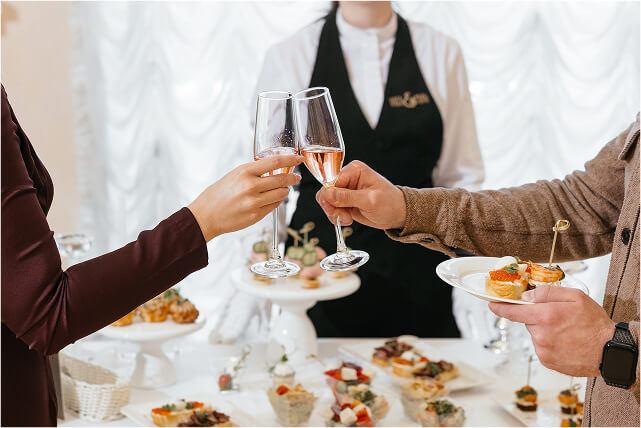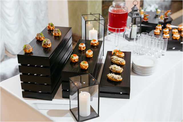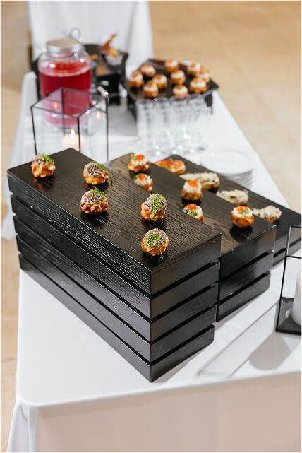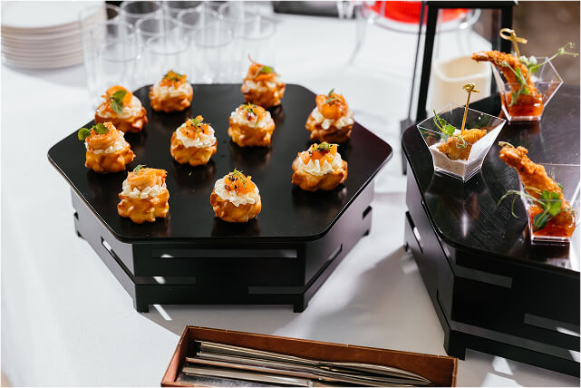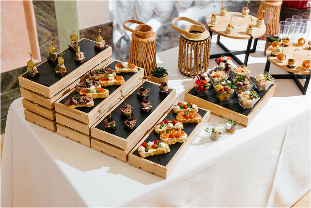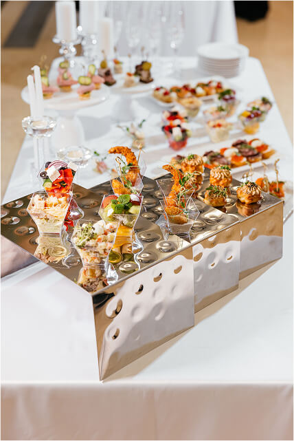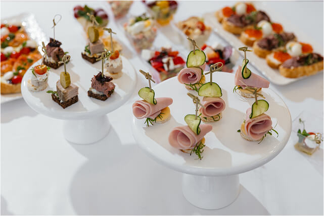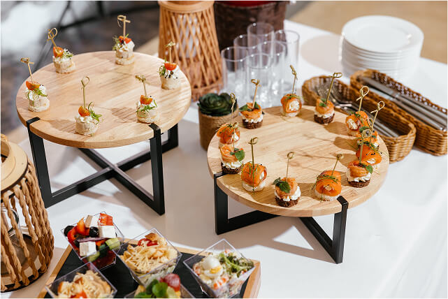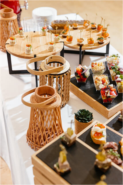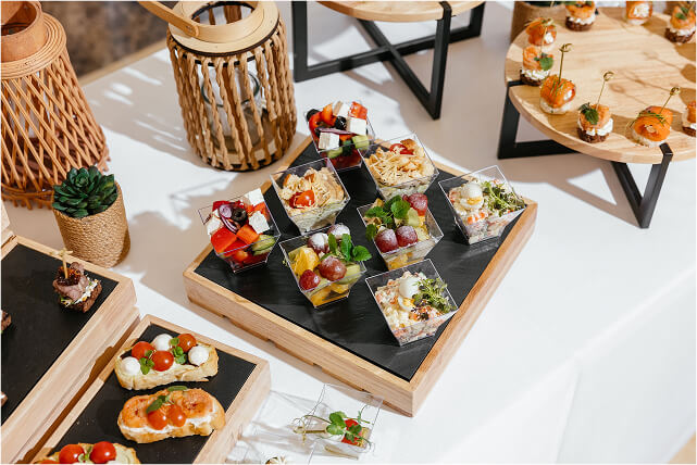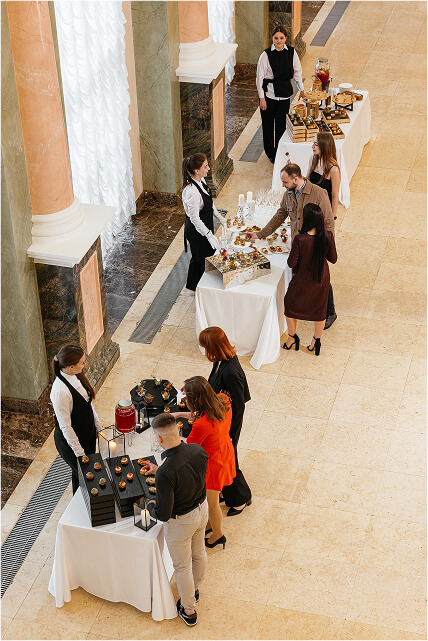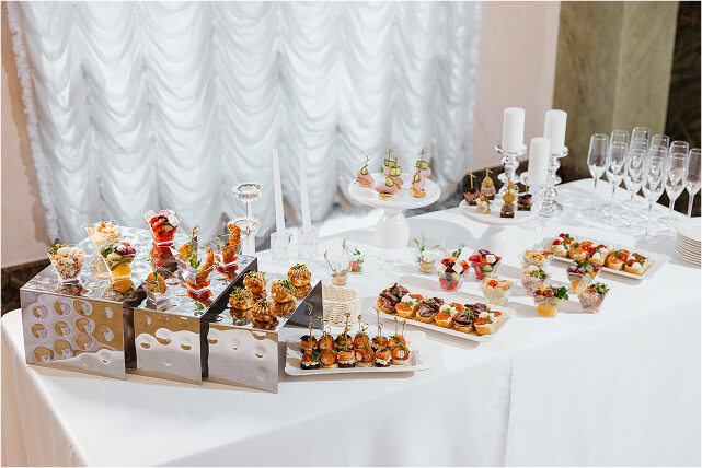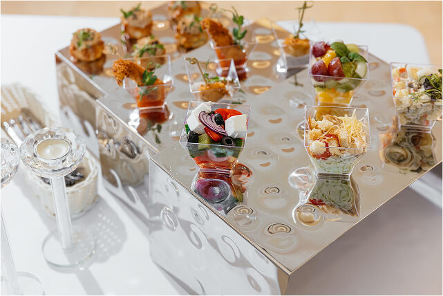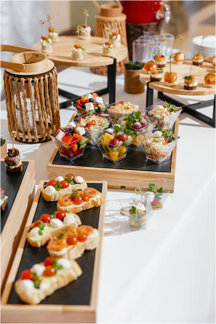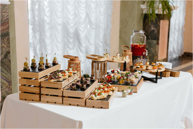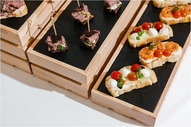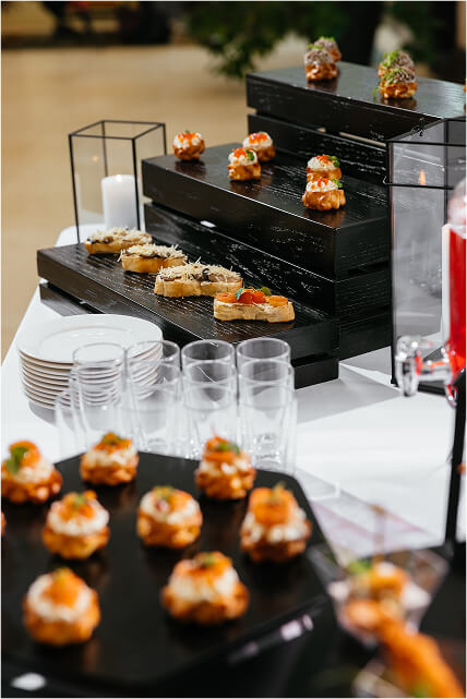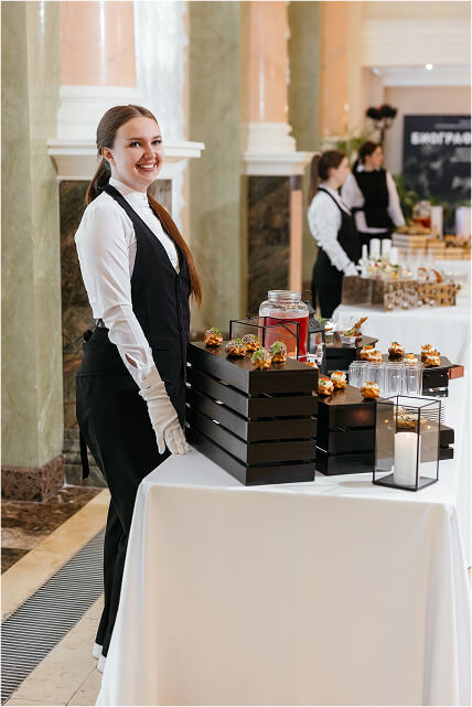 Фуршетные блюда, напитки, лёгкие закуски — встречаем ваших гостей красиво и с заботой.